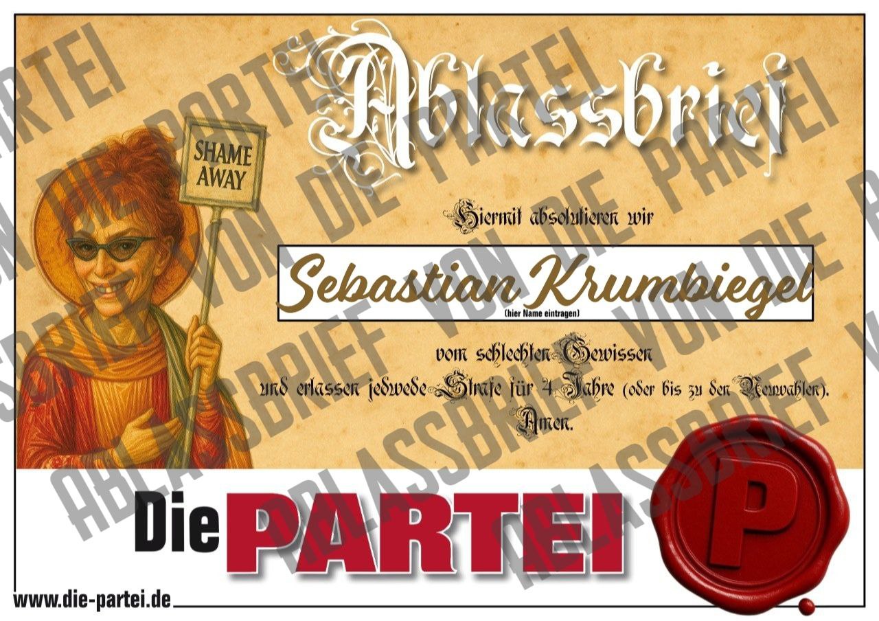 Dann verschenkt den Ablassbriefe von Die PARTEI.