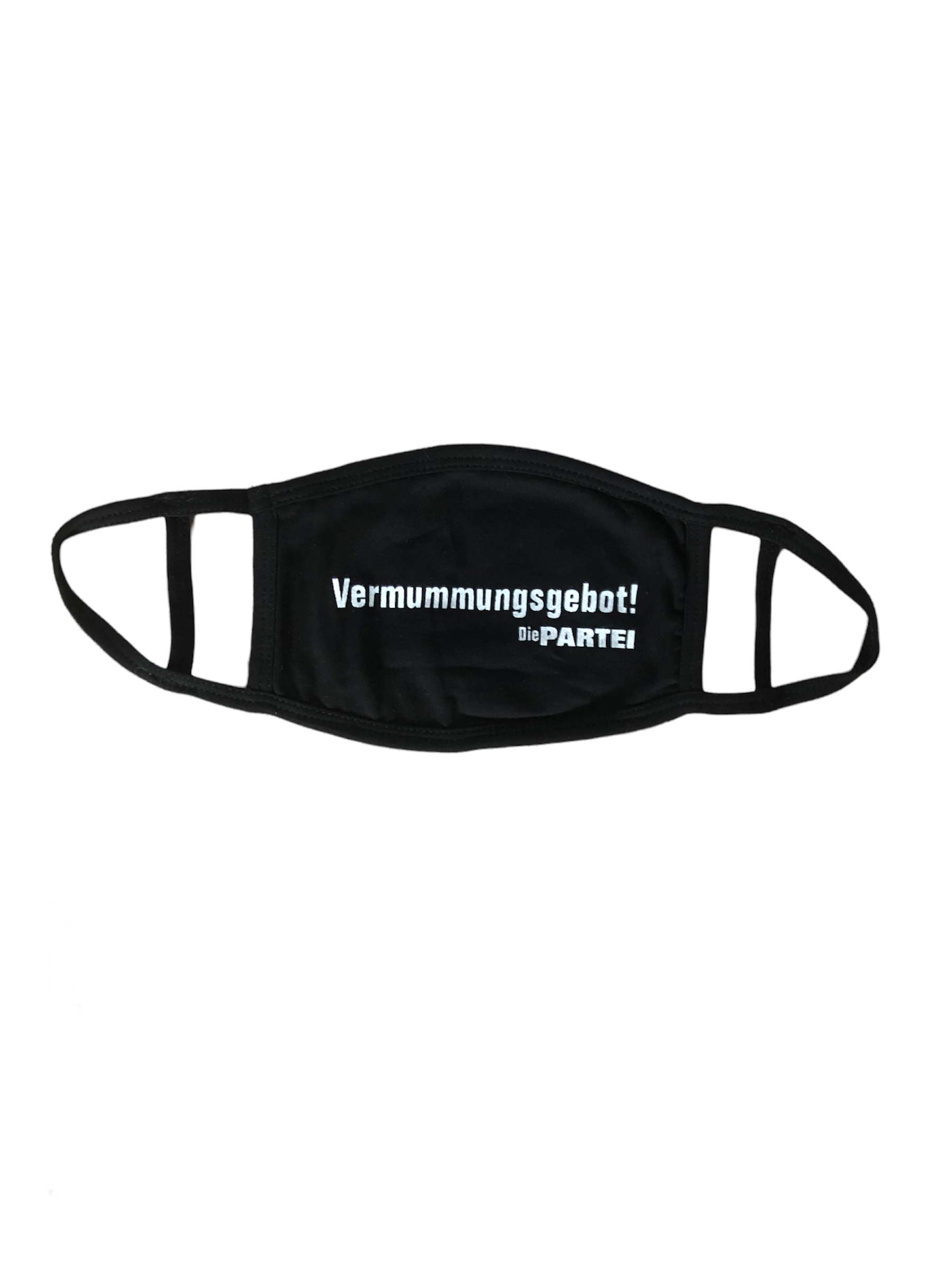 Denken Sie in Ihrem Kopf viel über die Versäumnisse von Jens Spahn nach? Hängen Sie eine PARTEI-Maske davor!Bei der Mund-Nasen-Maske handelt sich um einen Hygieneartikel (95% Baumwolle, 5% Elastan und antimikrobielle Zelan™ R3 / Teflon EcoElite™ Schicht) , der vom Umtausch ausgeschlossen ist.Die Farbe der Maske ist schwarz.
